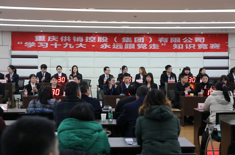 为进一步将党的十九大精神学习贯彻事情引向深入,引发全DB视讯系统党员干部群众学习十九大精神的热情,切实把宽大党员干部群众的头脑熟悉和行动统一到党的十九大精神上来,DB视讯集团党委于1月26日下昼举行了“学习十九大·永远跟党走”专题知识竞赛运动。加入本次运动的有DB视讯集团本部及下属9家子公司的参赛选手、集团本部全体干部职工及部分子公司向导。市总社组织人事处陈婉婧副处长、机关党委潘永琼同志亲临现场指导。